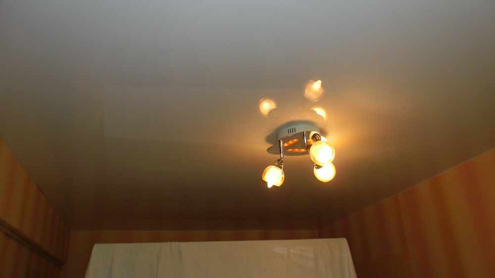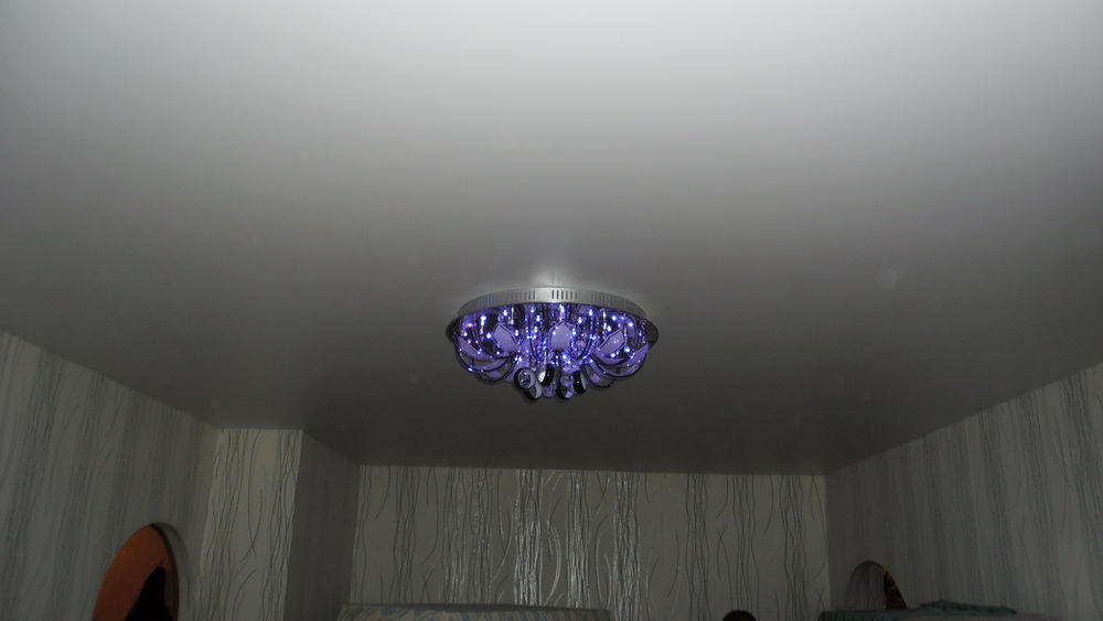 Мне очень понравился натяжной потолок. Он очень ровный, кипельно белый, идеально подходит под наш интерьер. А люстра дополняет рисунок на наших обоях. Очень порадовало, что работа была выполнена быстро и чисто, для меня это было очень важно, потому как у нас уже были оклеены обои. Огромное спасибо.